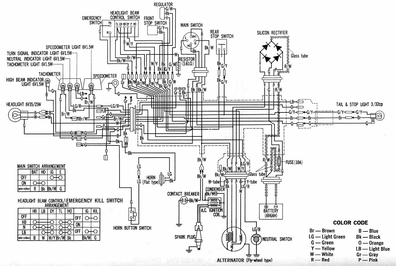 I did a diagram to help me,  when I found the bike had a plastic headlight instead of the steel one (and no main beam light) and so I fitted a correct one that I happened to have. This was to get  clear what the handlebar switch wiring